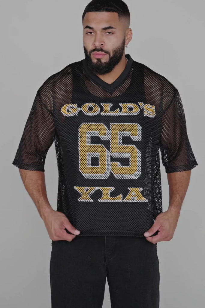 DISEÑO: Presentamos el Gold's Gym x YoungLA Mesh Jersey, una combinación perfecta de estilo retro y moderno. Esta versátil camiseta de cuello en V está confeccionada con malla transpirable, ideal para usar por sí sola o con una camiseta debajo para un toque adicional de estilo. Una pieza clásica con actualizaciones contemporáneas, este jersey combina el legado de Gold's Gym con el diseño urbano inspirado por YoungLA, entregando un look audaz e icónico.