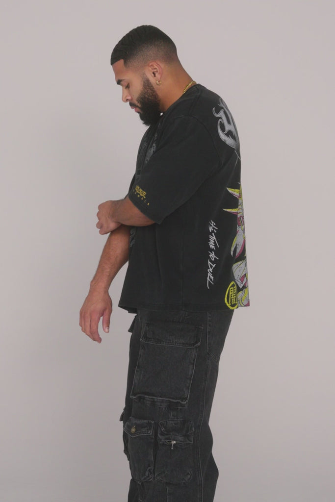 DISEÑO: Camiseta de ajuste relajado y corte boxy, confeccionada en 100% algodón con un acabado lavado que le da un look vintage. Presenta gráficos audaces de personajes, aportando toda la energía icónica de Yu-Gi-Oh a tu estilo streetwear diario.