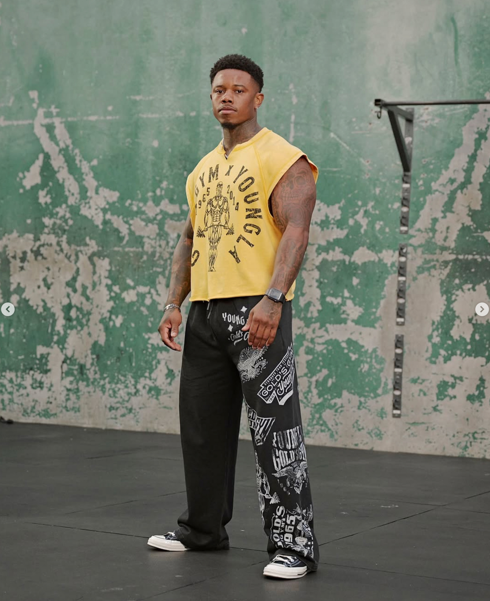 DISEÑO: Perfectas para un estilo desenfadado y resistente, estas camisetas sin mangas de la colaboración Gold’s Gym x YoungLA combinan un dobladillo sin rematar y un cuello desgastado con un clásico corte raglán. El lavado vintage y el gráfico desgastado en el pecho les otorgan un audaz estilo retro listo para cualquier ocasión.
