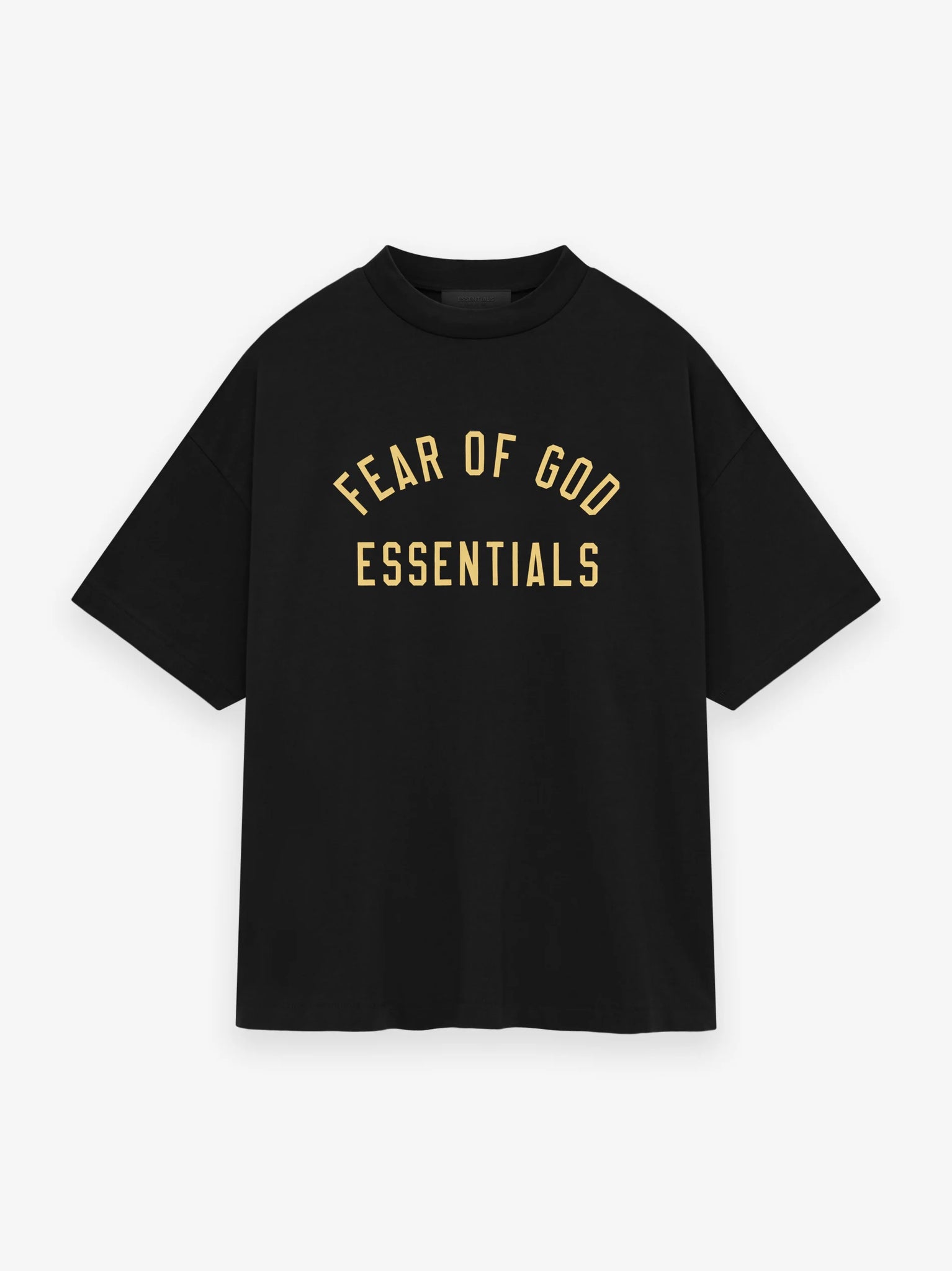 La Essentials Tee está hecha de tejido de punto 100% algodón. La camiseta con cuello redondo de canalé tiene un ajuste relajado en el cuerpo con hombros caídos. El gráfico colegial "Fear of God Essentials" está serigrafiado en el centro del frente, y una etiqueta de goma de Essentials Fear of God se encuentra en la parte posterior del cuello.