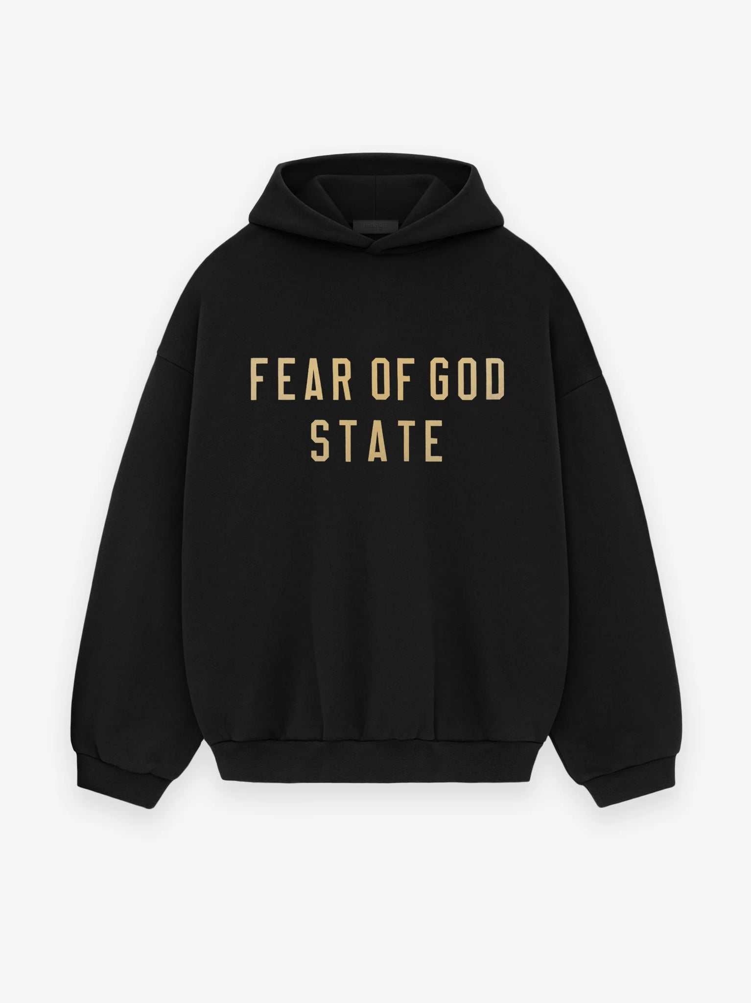 El Essentials Fleece Hoodie ha sido mejorada con una felpa central más pesada de 480 gsm para proporcionar mayor cuerpo y estructura. Un gráfico "Fear of God State" inspirado en el estilo colegial está serigrafiado en la parte frontal. Los detalles incluyen una capucha con cuello superpuesto, puños de punto canalé, dobladillo en la cintura y bolsillos laterales. La etiqueta de goma Essentials Fear of God se encuentra en la parte posterior del cuello.