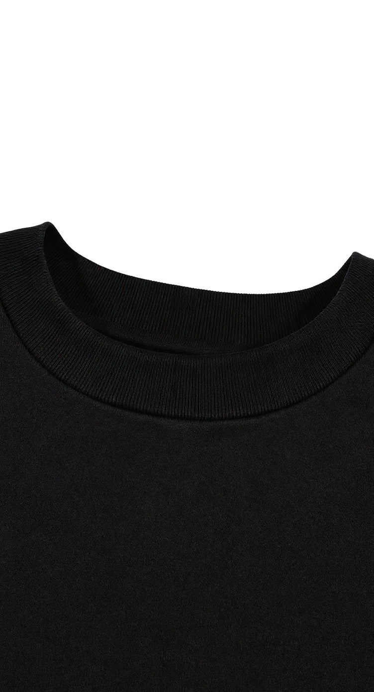 Confeccionada en algodón 100% premium de 280g, esta camiseta mantiene su forma incluso después de múltiples lavadas. Su corte boxy y loose fit, junto a los hombros caídos y acabado raw edge, aporta una estética robusta con un aire rebelde y minimalista.